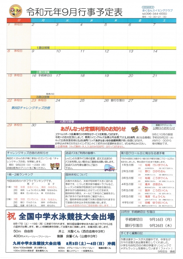 9月分行事予定表です。