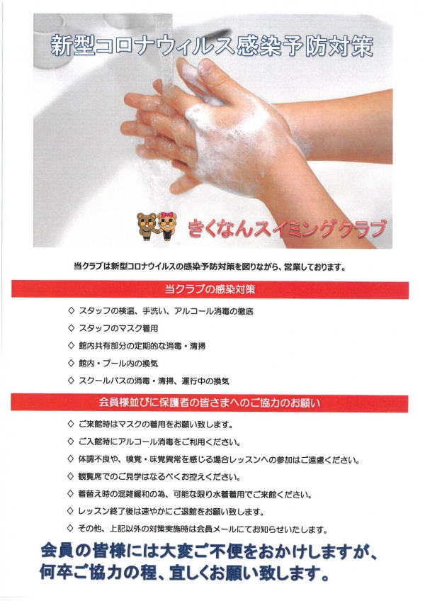 日頃より当クラブをご愛顧いただき誠にありがとうございます。当クラブでは新型コロナウィルス感染予防対策を図りながら営業しております。会員の皆様には大変ご不便をおかけしますがご協力の程、宜しくお願い致します。