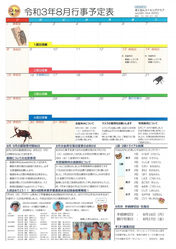 8月分行事予定表です。