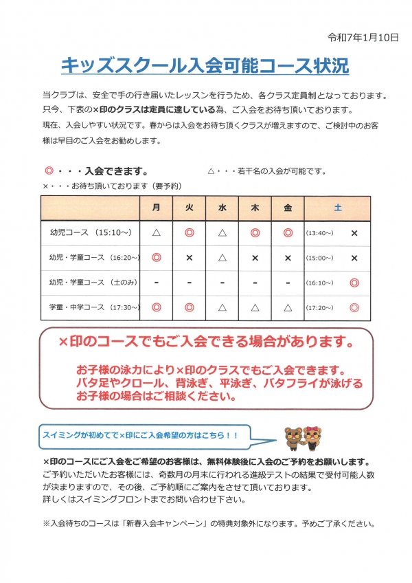 入会可能コースは表の通りです!超お得なキャンペーンもあと1ヶ月!!ご希望のコースがあればお早目にお申込み下さい!!