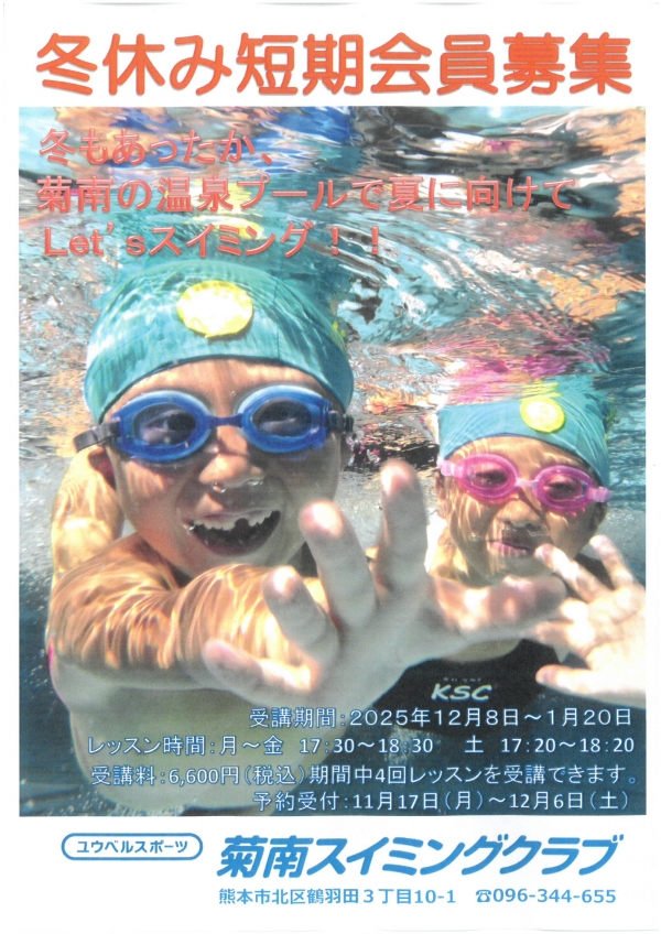 冬もあったか、菊南の天然温泉プールで夏に向けてスイミングに挑戦してみませんか!